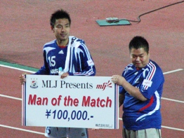 ![]() | ![]() | 追加点の場面、何故か勇蔵が袋叩きに | 今日のMOMは大島 |