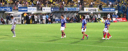 後半も前半と同じような展開となり、幸宏が鋭いフェイントからDFを交わしてシュートを狙うなど、試合の主導権を握る。66分、山瀬の突破からFKを獲得。ここでベンチからスカウティング情報を伝えられたであろう中澤が山瀬に耳打ち。そして山瀬がニアサイドに放ったシュートがゴールに吸い込まれ追加点。これと似たシーンは大分戦でも勇蔵が山瀬に耳打ちし、山瀬のFKがGKの逆を突き惜しいシーンがあった。こういったしたたかな分析や戦略は頼もしい。