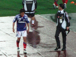 | 接触プレーで痛んだ哲也 | 退場となり退く吉田 | |