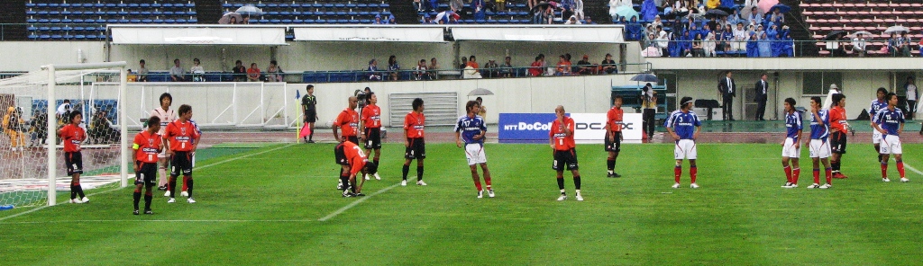 その後は右サイドが当たることもなく、シュートコースも消すことが出来ないままズルズルと下がり、ミドルシュートを打たれるなど守備面でもろさを見せたが、中央で中澤と勇蔵が体を張って相手攻撃を跳ね返す。