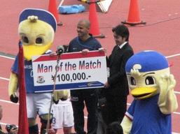 水含みの重たいピッチ、やや強く吹く風の影響に加え、日本代表選手の不在による若手の起用もあって評価の難しいかった試合。試合は左サイドを突破したロニーのクロスがゴール前の混戦からこぼれたところを隼磨が蹴り込み決勝弾。