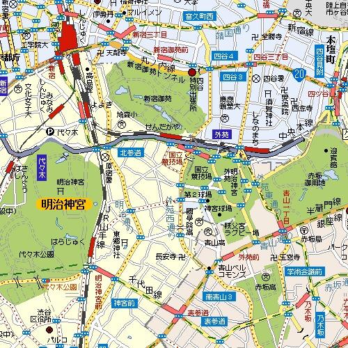 ・JR総武線「千駄ヶ谷」駅より徒歩5分 ・JR総武線「信濃町」駅より徒歩8分 ・東京メトロ銀座線「外苑前」駅より徒歩15分 ・都営地下鉄大江戸線「国立競技場」駅(A2出口)より徒歩1分 日本代表や関東のJリーグクラブがホームスタジアムが使用できない場合を中心に使用する競技場。メインスタンドの一部を除いては屋根がないので雨の日はカッパが必須アイテム。歴史があるということは古く、老朽化が見られます。ここ数年は改修工事(大型映像装置の付け替えやメインスタンド中央部分の座席を独立シート型に交換等)を行っているようです。あまり好きではないスタジアムなのですが、マリノスもホームゲームで使用することがあります… 国立競技場は手荷物検査が他のスタジアムに比べてとても厳しいです。日頃は手荷物検査を行わないマリノスのホームゲームでもしっかりと行っています。ビン、缶はもちろん、ペットボトルも一切持ち込み禁止なので、事前に紙パックの飲み物を購入するか、水筒を持参しましょう。中で買うと高いです。 ◇スタジアム周辺 東京体育館、神宮球場、秩父宮ラグビー場など、大きな施設が集中しているにも関わらず、国立競技場付近にはコンビニ、レストランはほとんどありません。東京メトロ銀座線「外苑前駅」付近まで行けばコンビニやファーストフードに加え、ラーメン屋、カレーショップなどがあります。JR総武線「千駄ヶ谷駅」の正面をまっすぐ行ったところにもコンビニとファーストフード店があります。 ◇駐車場 明治神宮外苑にある聖徳記念絵画館の駐車場は396台収容で料金は1日1000円(普通車)で利用できる(厳密には仕方なく開放という方が正しい)ようです。また、神宮球場、国立競技場でナイトゲームが開催される日は終了後1時間まで開放しているようです。 ただし、この駐車場が満車で利用できないと周辺にコインパーキングはあまりなく、料金も30分250円〜300円と割高のため早い時間帯に来場できない場合や日本代表戦等の多くの来場者が予想される場合は自動車でのアクセスは避けたほうが良さそうです。 ◇スタジアム内売店(ビジター席) 国立競技場の売店はあまりオススメできません。私は5年以上国立の売店は利用していませんので詳細は不明ですが、ソフトドリンクが250円前後、ビールが500〜600円、カレーライス、その他はポテトフライ、フランクフルトなどの軽食程度だったと思います。 ◇終了後 観客のほとんどが電車を利用しているので、駅のきっぷ売り場が混雑します。神宮球場の野球などと終了時間が重なってしまうと大変です。あらかじめ帰りのきっぷを購入しておくか、Suicaやパスネットがあった方がいいでしょう。 スタジアム周辺地図