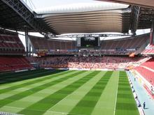 香川県にある立派な競技場。岡山県の桃太郎スタジアムと構造的には瓜二つだが、メインスタンドが二層式になっています。ゴール裏は傾斜の緩い芝生席になっているので観戦にはあまり適していません。